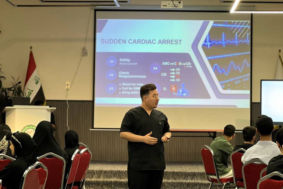 قدّم الطالب محمد علي الموسوي من كلية الطب – المرحلة السادسة في جامعة وارث الأنبياء (عليه السلام) ورشة تدريبية متخصصة في الإسعافات الأولية (BLS) لعدد من طلبة الكليات الطبية، وذلك بدعوة من وزارة الشباب والرياضة/ دائرة الرعاية العلمية، وبحضور وكيل وزير الشباب والرياضة.