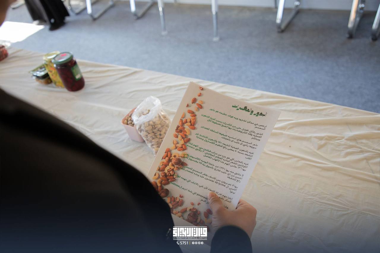 نظّمت جامعة وارث الأنبياء ممثلةً بـ كلية التمريض في جامعة وارث الأنبياء نشاطًا تثقيفيًا ضمن فعاليات المنتدى الثقافي الطلابي، تناول موضوع الأغذية الصحية والمستدامة وأثرها في الحفاظ على صحة الإنسان وتعزيز الوقاية من الأمراض.