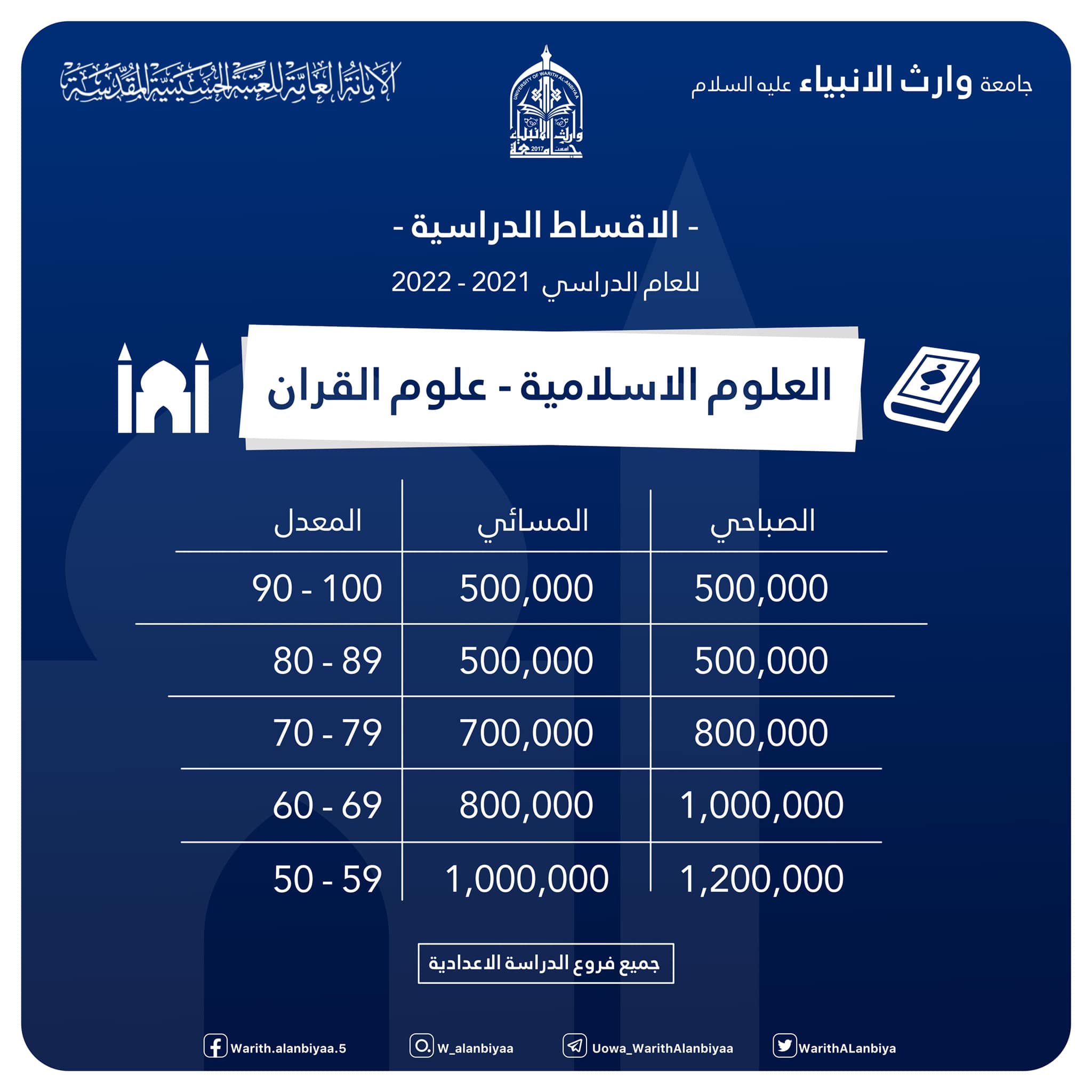 الطلبة الاعزاء الراغبين بالتقديم على كلية العلوم الاسلامية في جامعة وارث الانبياء(عليه السلام)