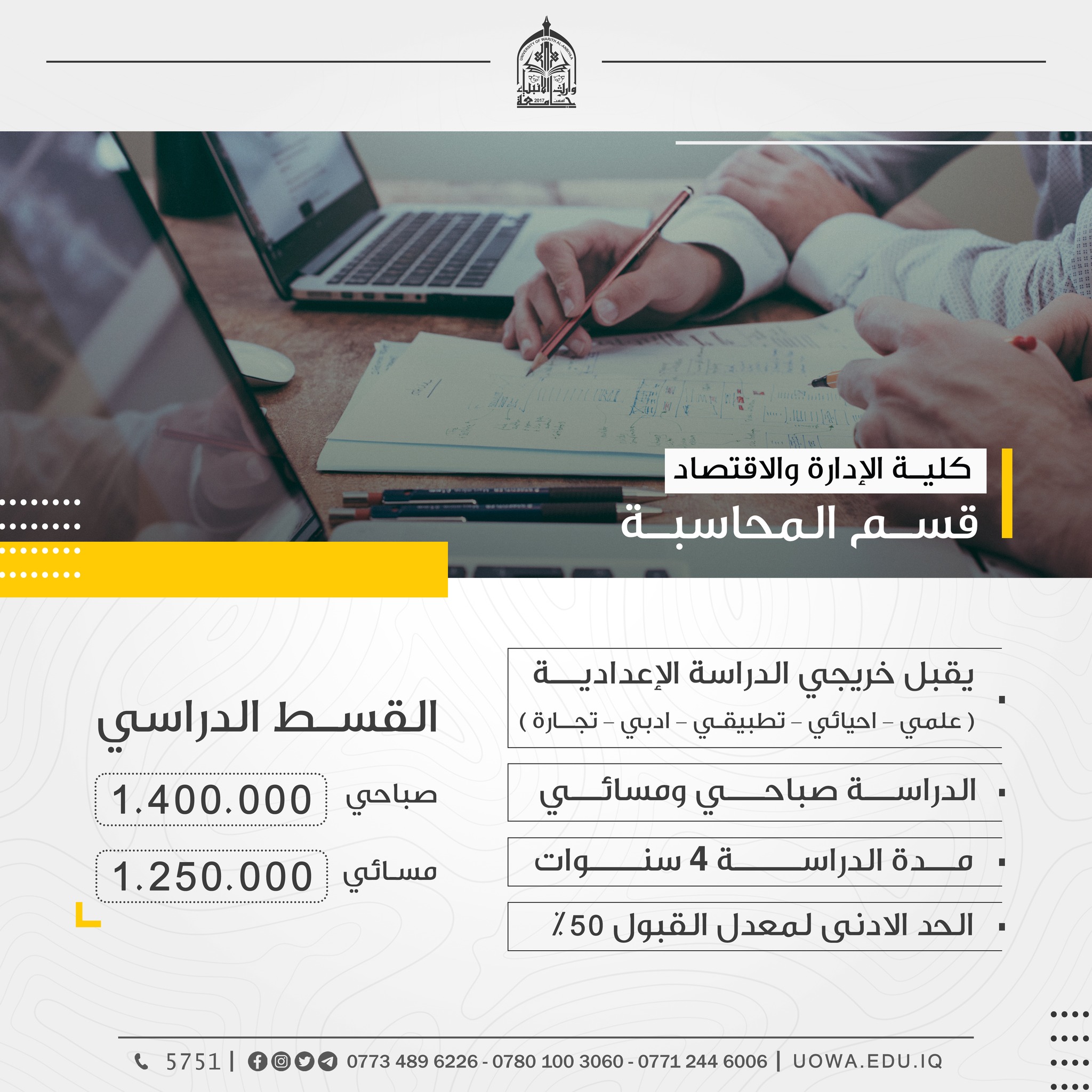 سارعوا بالتسجيل لكي لاتفوتوا فرصة الدراسة الاكاديمية في كليات واقسام جامعة وارث الانبياء(عليه السلام)