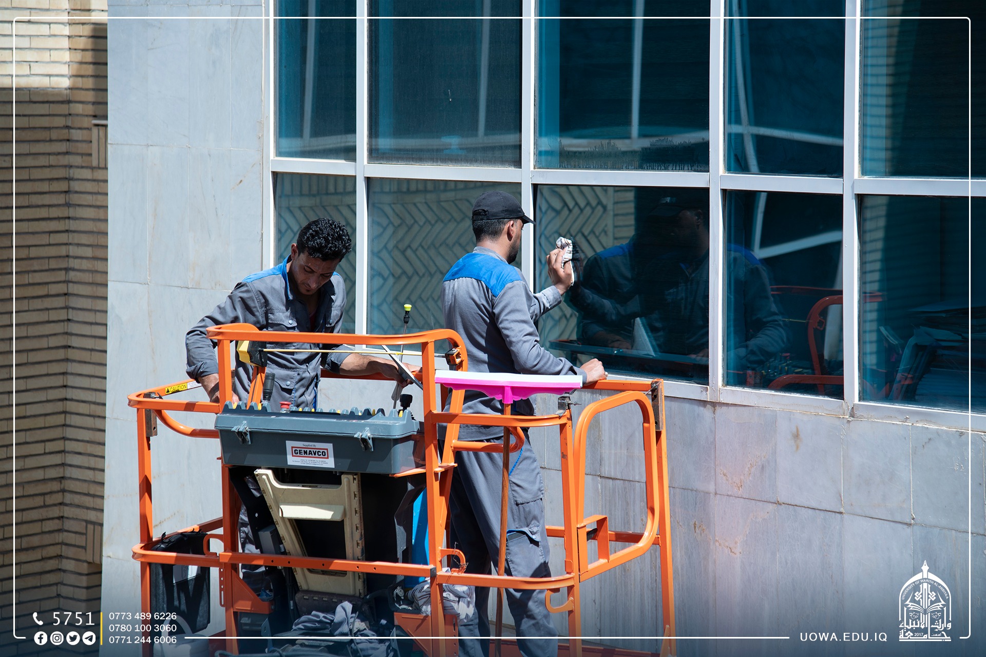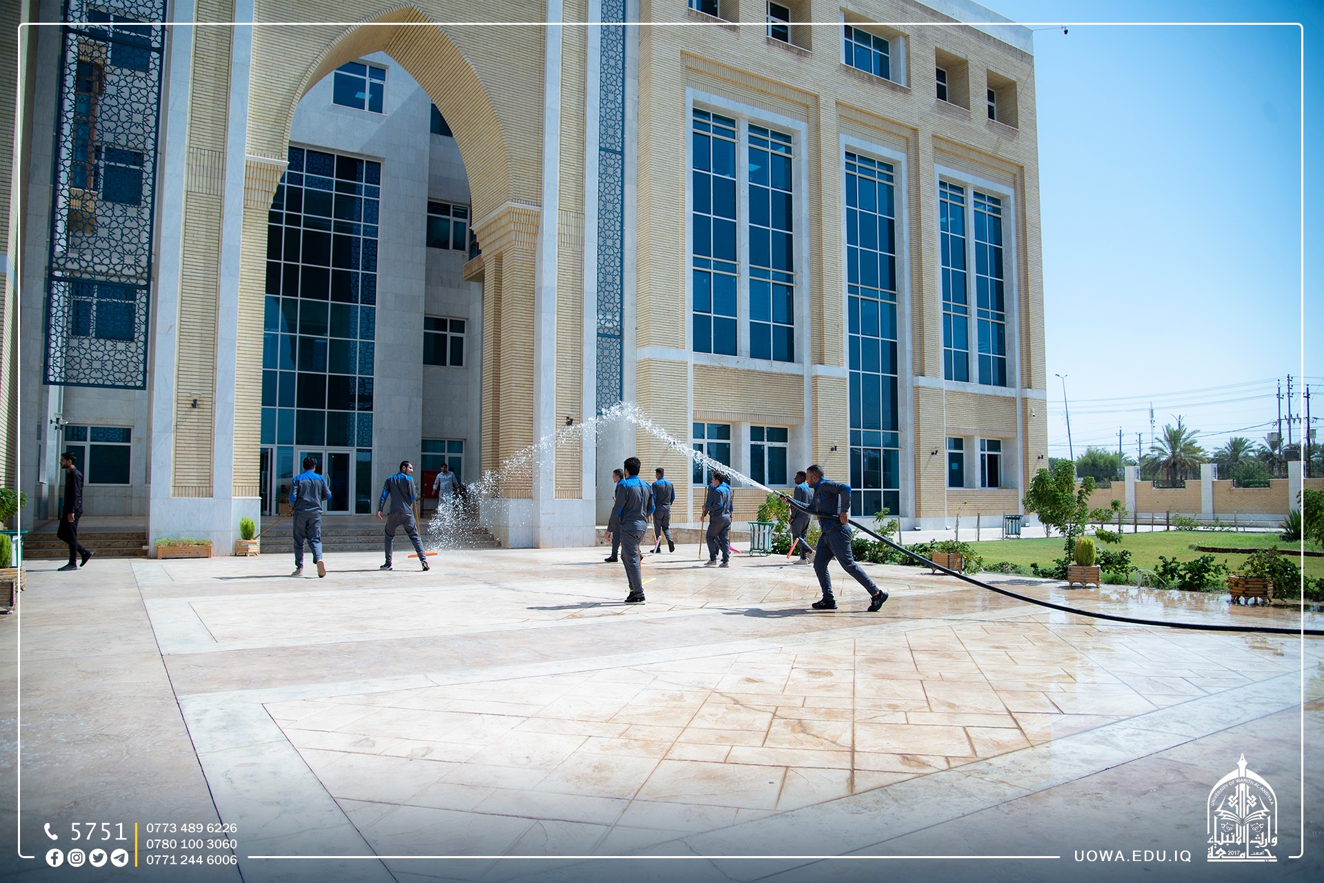 قسم رعاية الحرم في العتبة الحسينية المقدسة بكادره المتخصص يباشر بأعمال تهيئة مباني الجامعة وادامتها ضمن الاستعدادت للعام الدراسي الجديد.