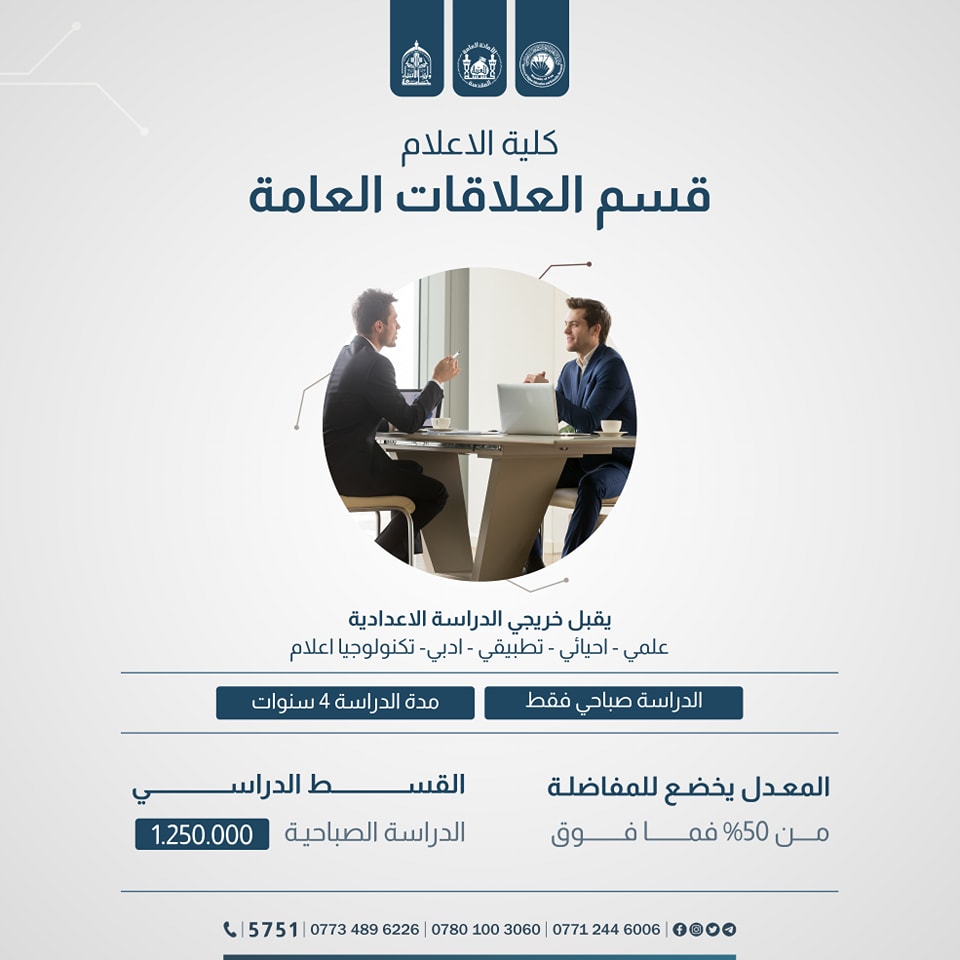 ضمن الكليات والاقسام المستحدثة في جامعة وارث الانبياء(عليه السلام ) #كلية  الإعلام بقسميها: