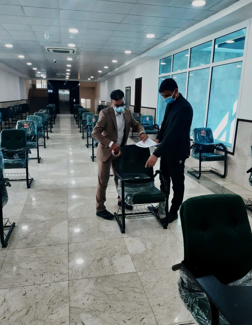 تجهيز القاعات الدراسية استعداداً للامتحانات الحضورية في قسم ادارة الاعمال والتي ستبدأ يوم الخميس المصادف 8/4/2021، مع تأكيد عمادة الكلية على ضرورة الالتزام العالي بالإجراءات الوقائية ،حيث تم مراعاة متطلبات الوزارة من حيث نسبة الحضور ومقدار التباعد بين الطلبة والمواد الدراسية المشمولة بالامتحانات الحضورية .