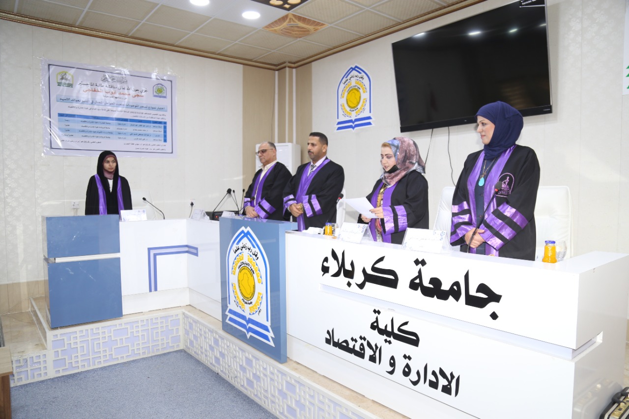 شاركت الدكتورة هبة الله مصطفى عضوا في مناقشة علمية لطالبة الماجستير/ قسم العلوم الماليه والمصرفية/جامعة كربلاء (سجى محمد ايوب) في يوم الخميس المصادف ١٨/١١/٢٠٢١ عن رسالتها الموسومة (اختبار نموذج تسعير الموجودات متعدد العوامل في التنبؤ بعوائد الاسهم) وتألفت لجنة المناقشة من السادة: