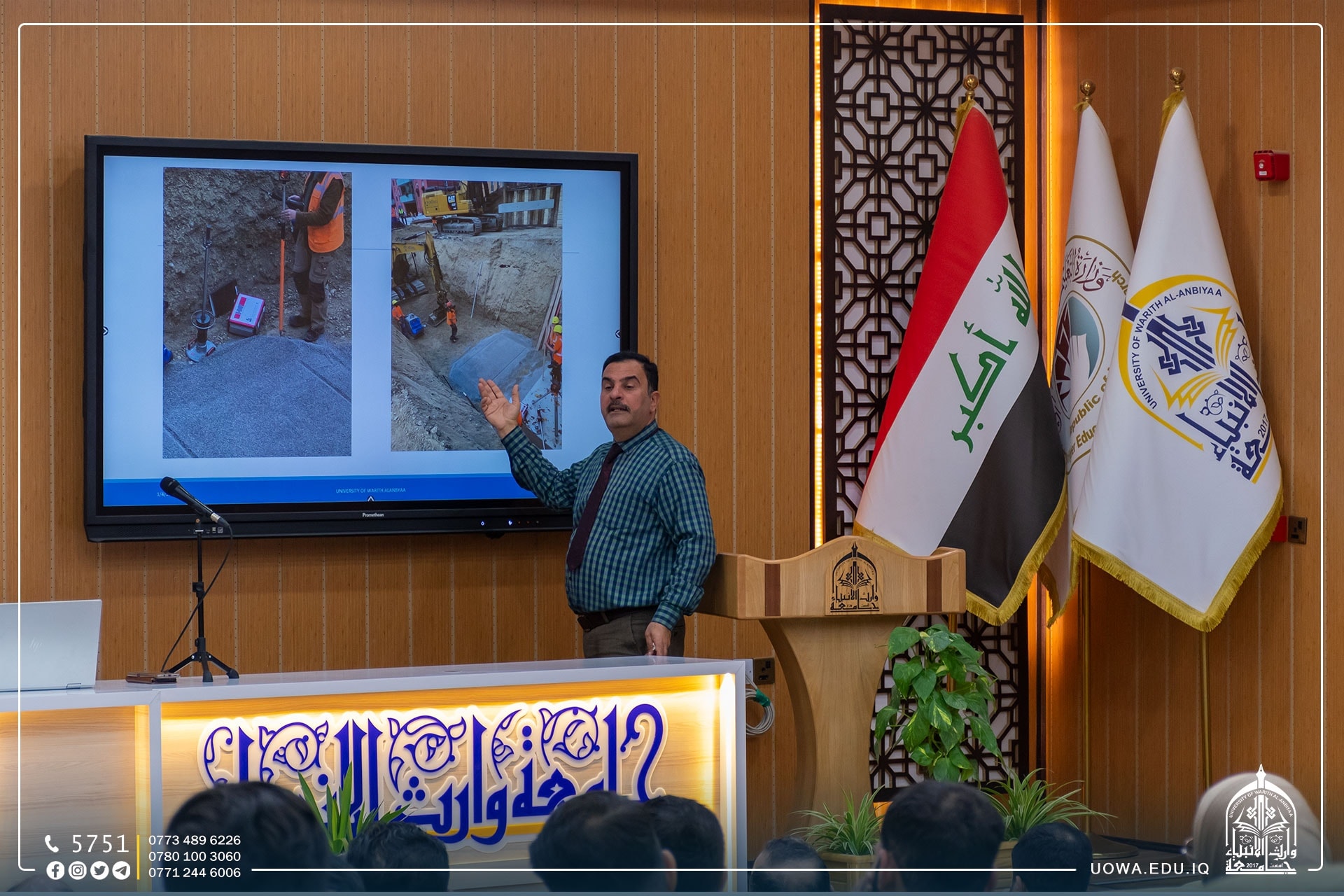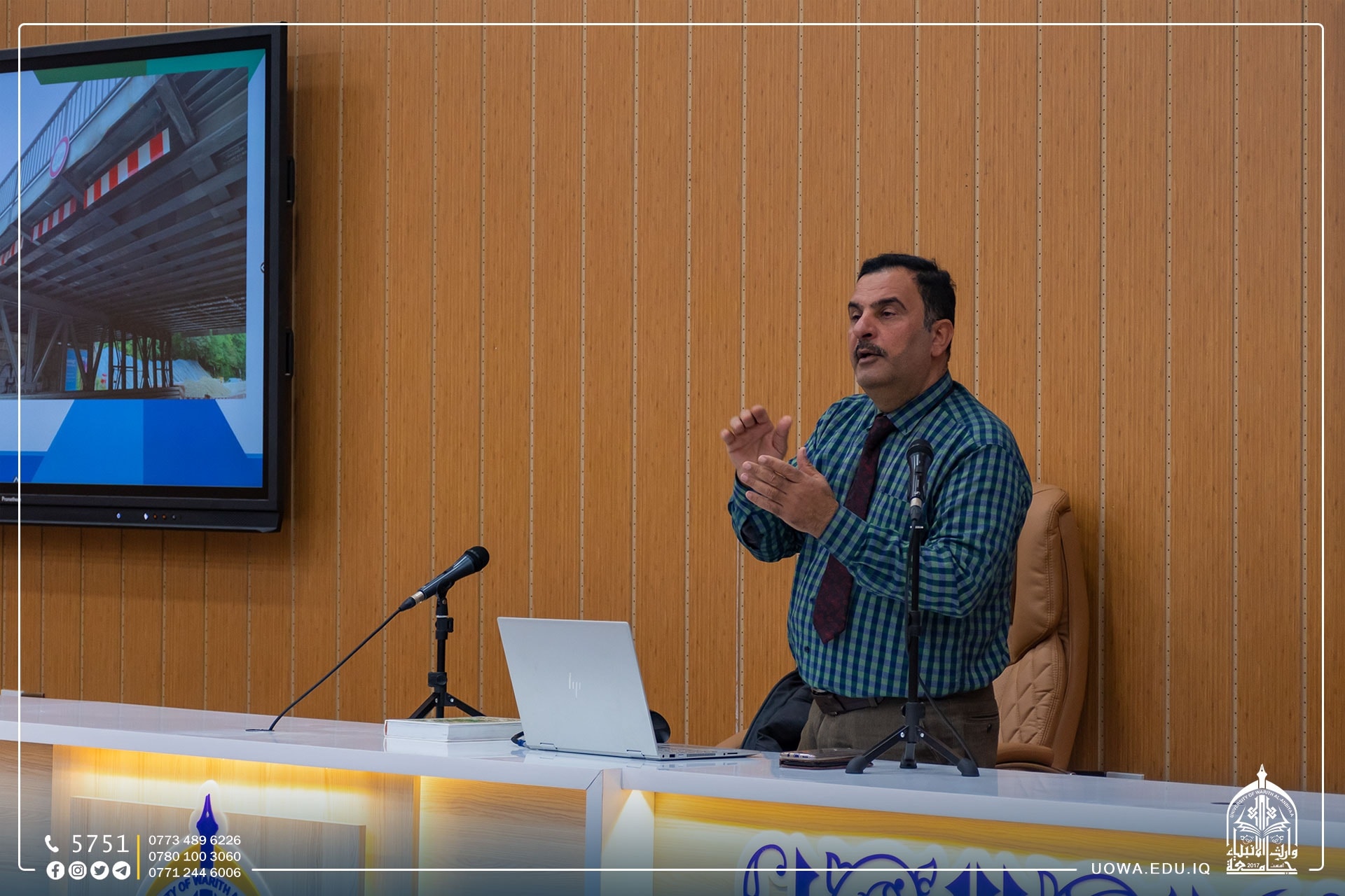 اقام قسم الهندسة المدنية ندوة علمية بعنوان(Modern Construction Technology Using Hydraulic Jacks Systems Rapid Bridge Replacement on 5 Days Timelapse) ، قدمها المتخصص في تصميم الهياكل الحديدية وتصميم المنشئات الكونكريتية الأستاذ الدكتور هيثم حسن متعب الدعمي من جامعة بابل.