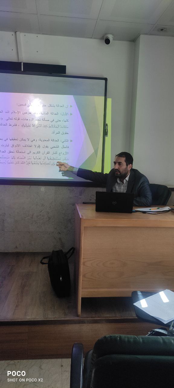 واستهدفت الورشة طلبة كلية العلوم الإسلامية، وقدّمها م.م مرتضى محمد علي آل تاجر، متناولًا مفهوم العدالة في الإسلام بشقّيها المادي والمعنوي، ودور التشريعات الإسلامية في ترسيخ العدالة والمساواة وصون الحقوق الإنسانية.