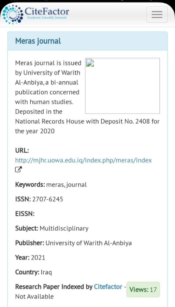 تم فهرسة مجلة مِراس في موقع دليل المجلات الدولية العلمية citefactor