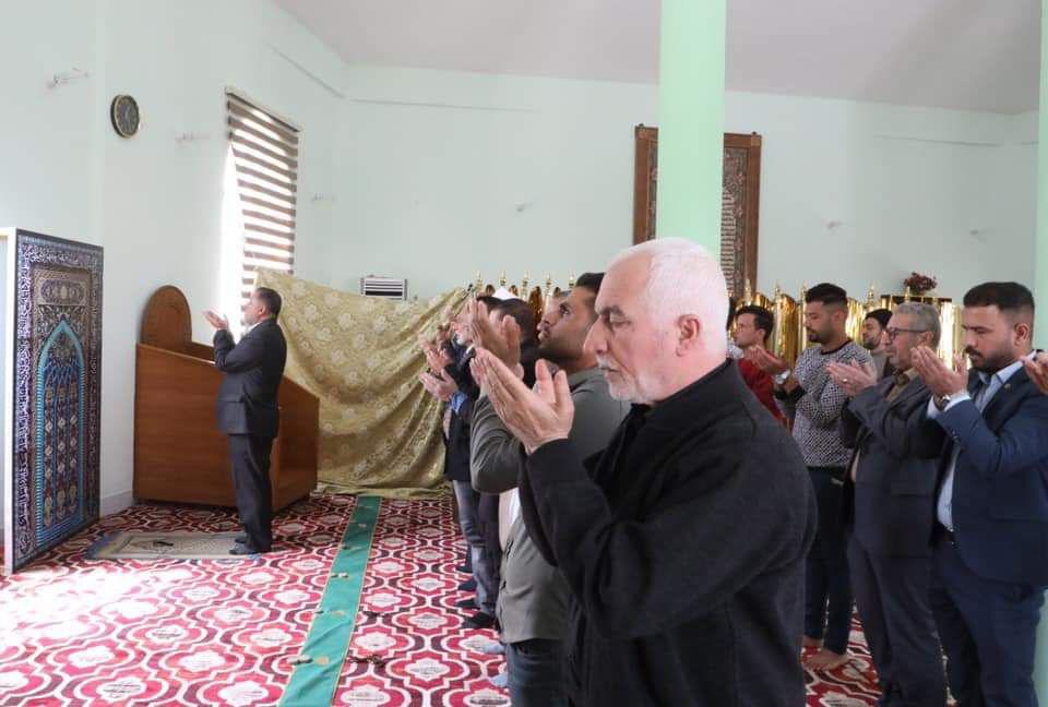من هذا المنطلق يأم بصلاة الجماعة احد طلبة كلية العلوم الاسلامية في مسجد الجامعة .