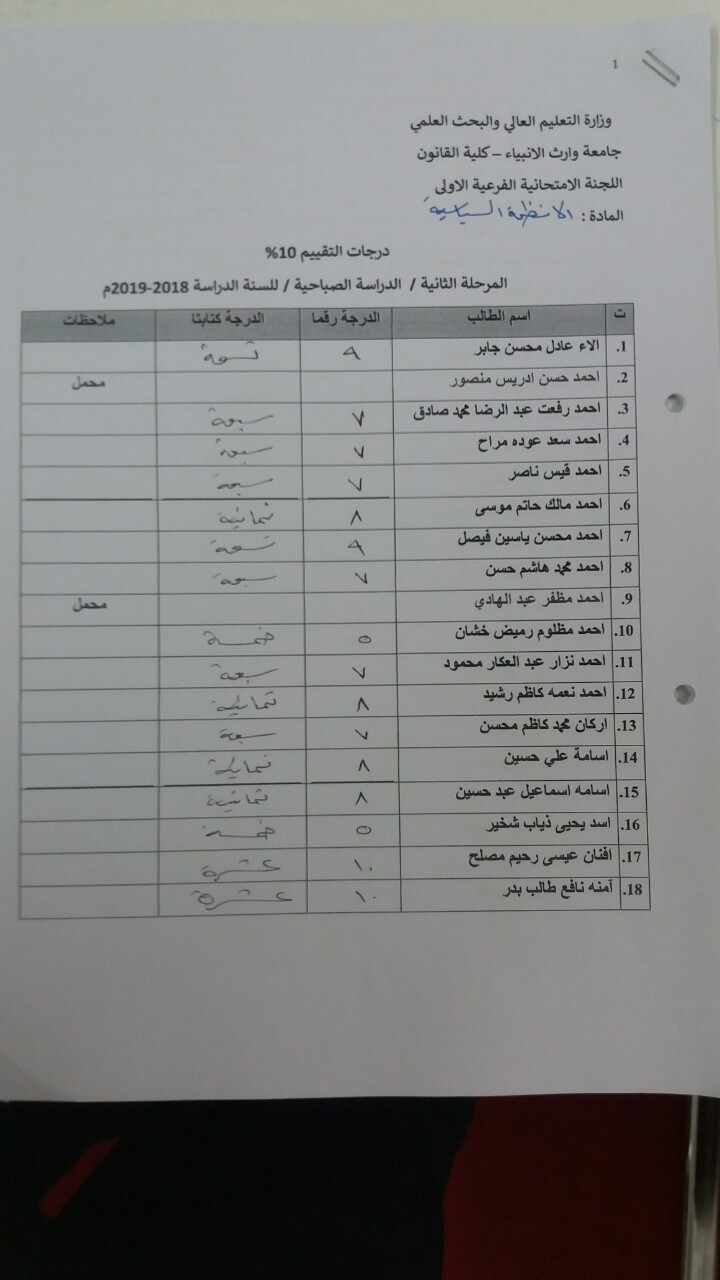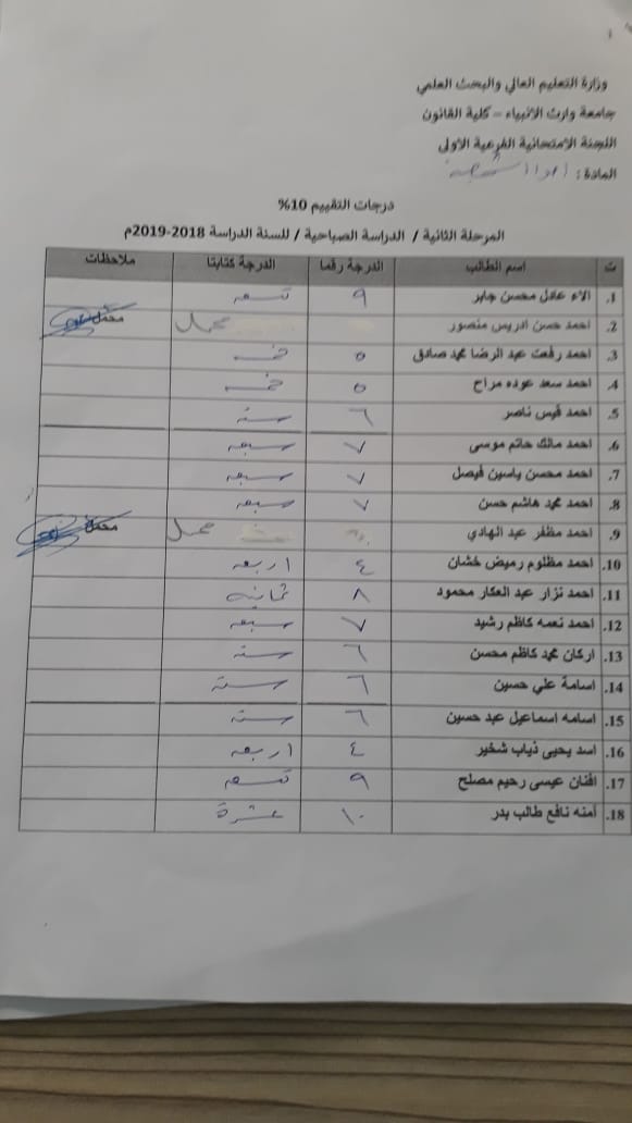 إجراء الامتحان المشترك لتعزيز الرصانة العلمية في قسم العلوم المالية والمصرفية الاسلامي كلية العلوم الاسلامية
