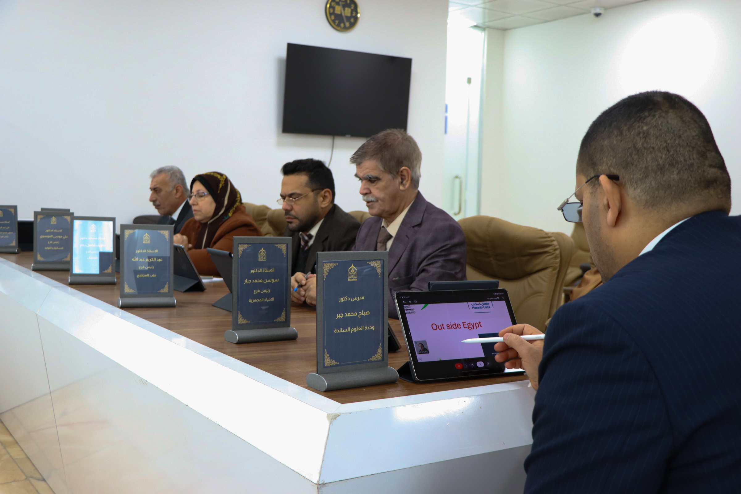 عقد مجلس كلية الطب اجتماعه التاسع، حيث تضمّنت الجلسة اعتماد مبادئ حوكمة عمل المجلس، إلى جانب إقرار استخدام الأجهزة اللوحية (iPad) في إدارة ومتابعة مقررات الجلسة، بما يسهم في تنظيم العمل الإداري وتسهيل تداول محاضر وقرارات المجلس بشكل إلكتروني.