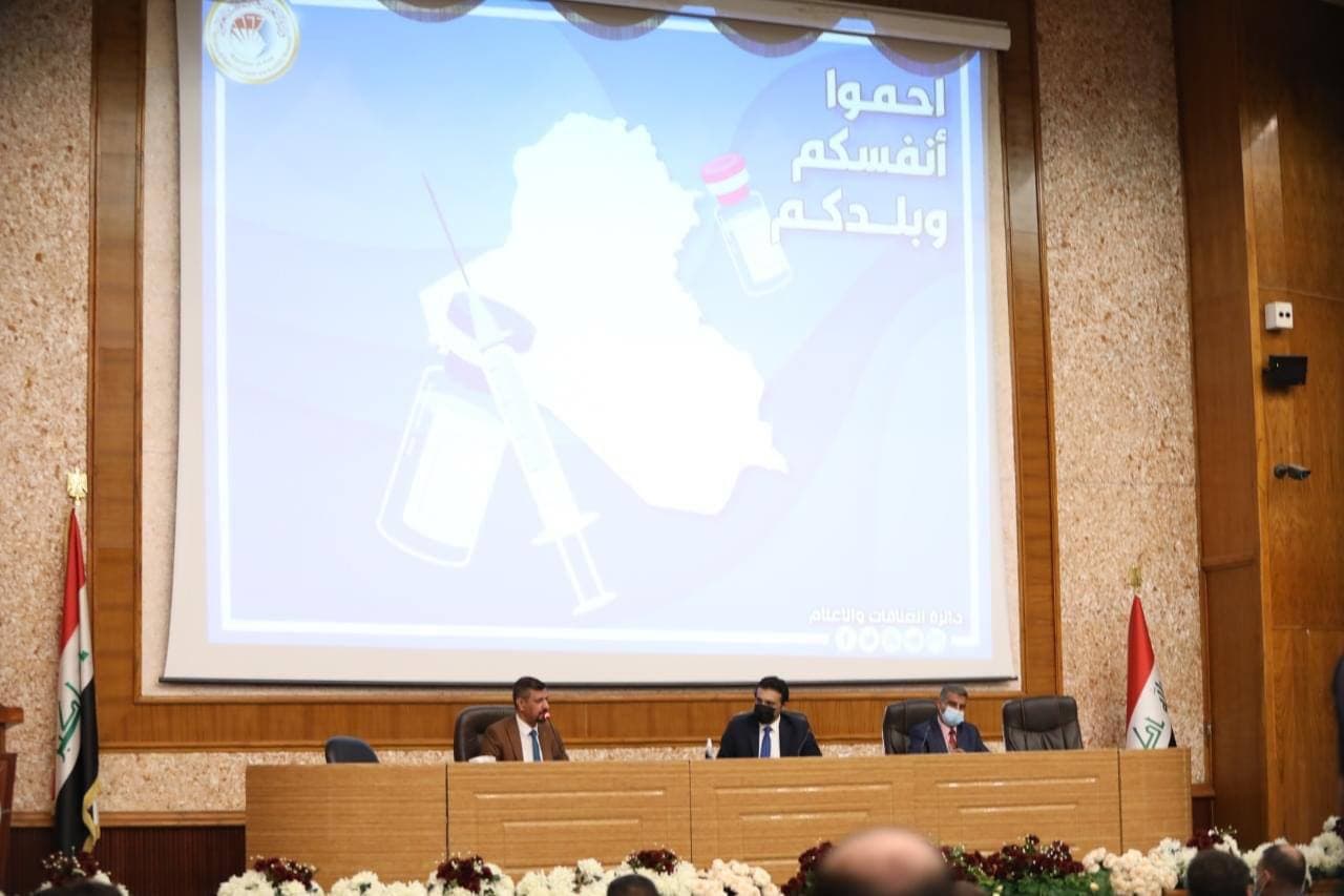 نظمت دائرة العلاقات والاعلام في وزارة التعليم العالي والبحث العلمي ندوة عن لقاحات كوفيد 19 بالتعاون مع دائرة الصحة العامة في وزارة الصحة.