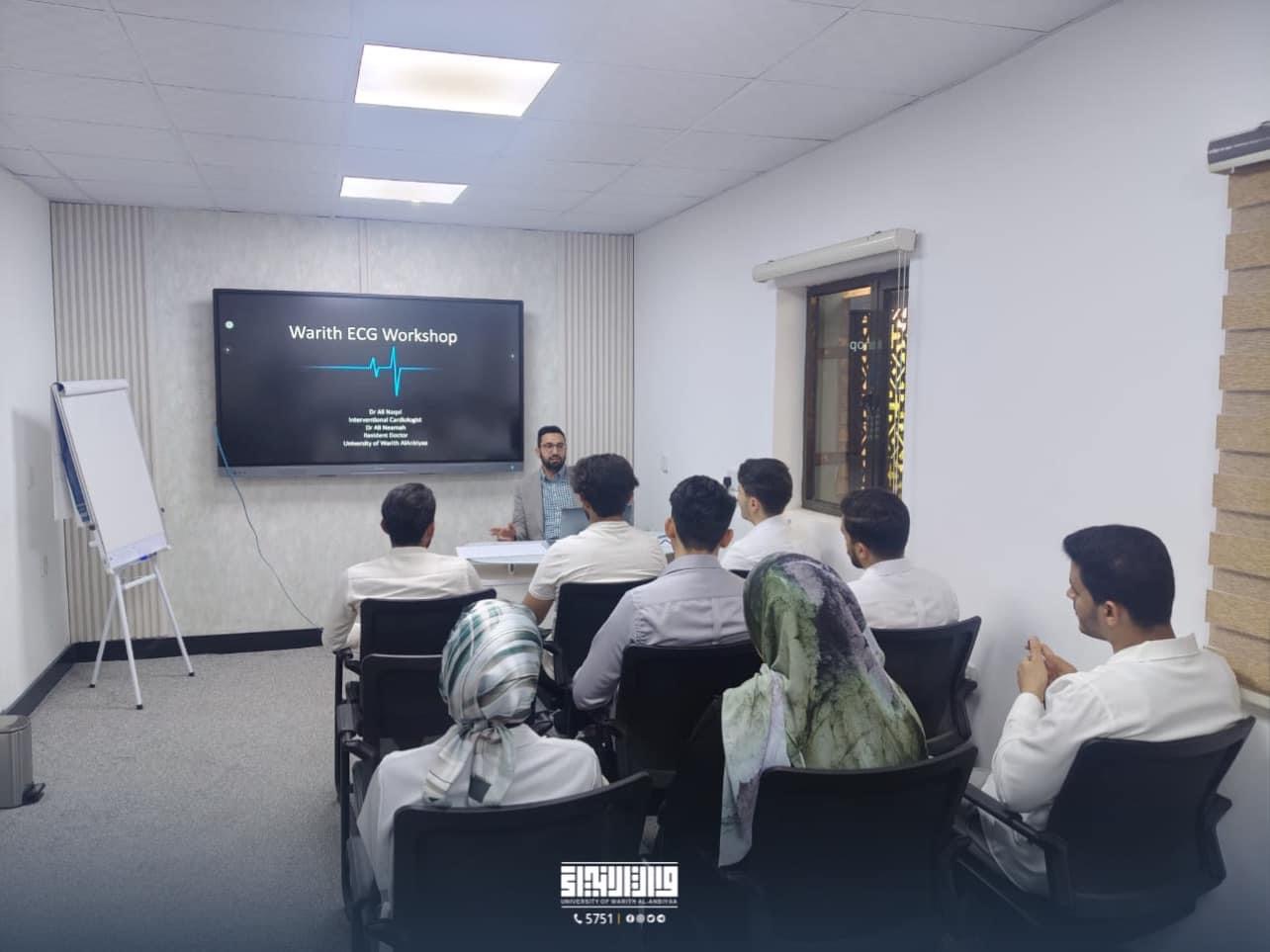استضاف المركز الوطني لتقييم الكفايات الطبية ورشة عمل تدريبية متخصصة في تفسير رسم القلب الكهربائي (ECG)، استهدفت طلبة كلية الطب المرحلة الرابعة، والخامسة في جامعة وارث الأنبياء(عليه السلام) وطلبة المرحلة الخامسة والسادسة في جامعة كربلاء. تأتي هذه الورشة ضمن سلسلة من البرامج التدريبية التي تهدف إلى تعزيز المهارات العملية لطلبة الطب في تشخيص الأمراض القلبية باستخدام أحدث التقنيات الطبية.تميزت الورشة بتركيزها على الجانب العملي من خلال أجهزة المحاكاة الطبية الحديثة التي يمتلكها المركز، والتي تحاكي الواقع السريري وتوفر تجربة تعليمية تفاعلية ومتكاملة للطلبة. وتعتبر هذه الأجهزة جزءًا من الجهود المستمرة للمركز لتعزيز جودة التعليم الطبي في العراق من خلال تقديم بيئة تدريبية حديثة تدعم التعليم العملي.