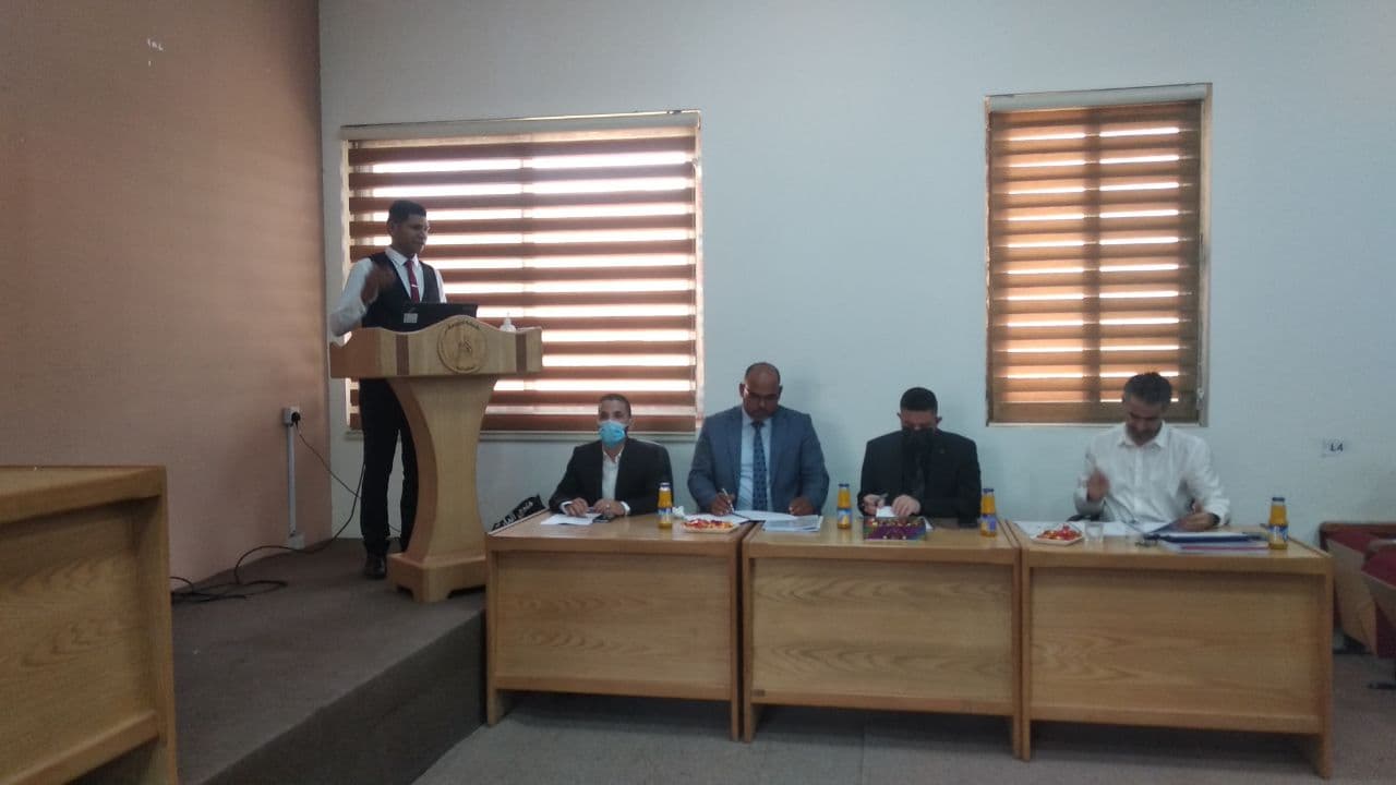 اشرف الاستاذ المساعد الدكتور مرتضى غانم الجبوري عميد كلية التمريض على طالب الدراسات العليا احمد عبد مسلم من جامعة الكوفة حيث تمت المناقشة تمام الساعة التاسعة صباحا من يوم الخميس الموافق 5\9\2021 على قاعة التنمريض الكبرى في كلية التمريض