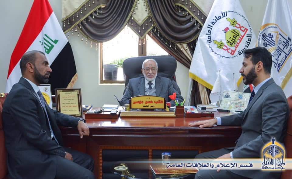 زيارة وفد طبي ممثلا بالدكتور حسين محبس الحصناوي المعاون العلمي لمستشفى الهندية والدكتور علي خضير العنبوري رئيس الاستشاريين الدوليين .حيث تطرق الجانبين الى الأمور العلمية التي تخص الجامعات وخاصة فيما يتعلق بالجوده والاعتمادية وتطرق دكتور علي عن إمكانية الاستفادة من خدماتهم الاستشارية كونهم جهة ترعى الأمور التي تتعلق بالجودة والاعتمادية .وأبدى الوفد الضيف بالخطوات الجيدة والمتسارعة التي تسيير بها جامعة وارث الانبياء نحو الارتقاء العلمي والوصول إلى الاعتمادية .وقد حضر الاجتماع الدكتور عباس الدعمي المساعد العلمي والدكتور خميس بندر عميد كلية التمريض