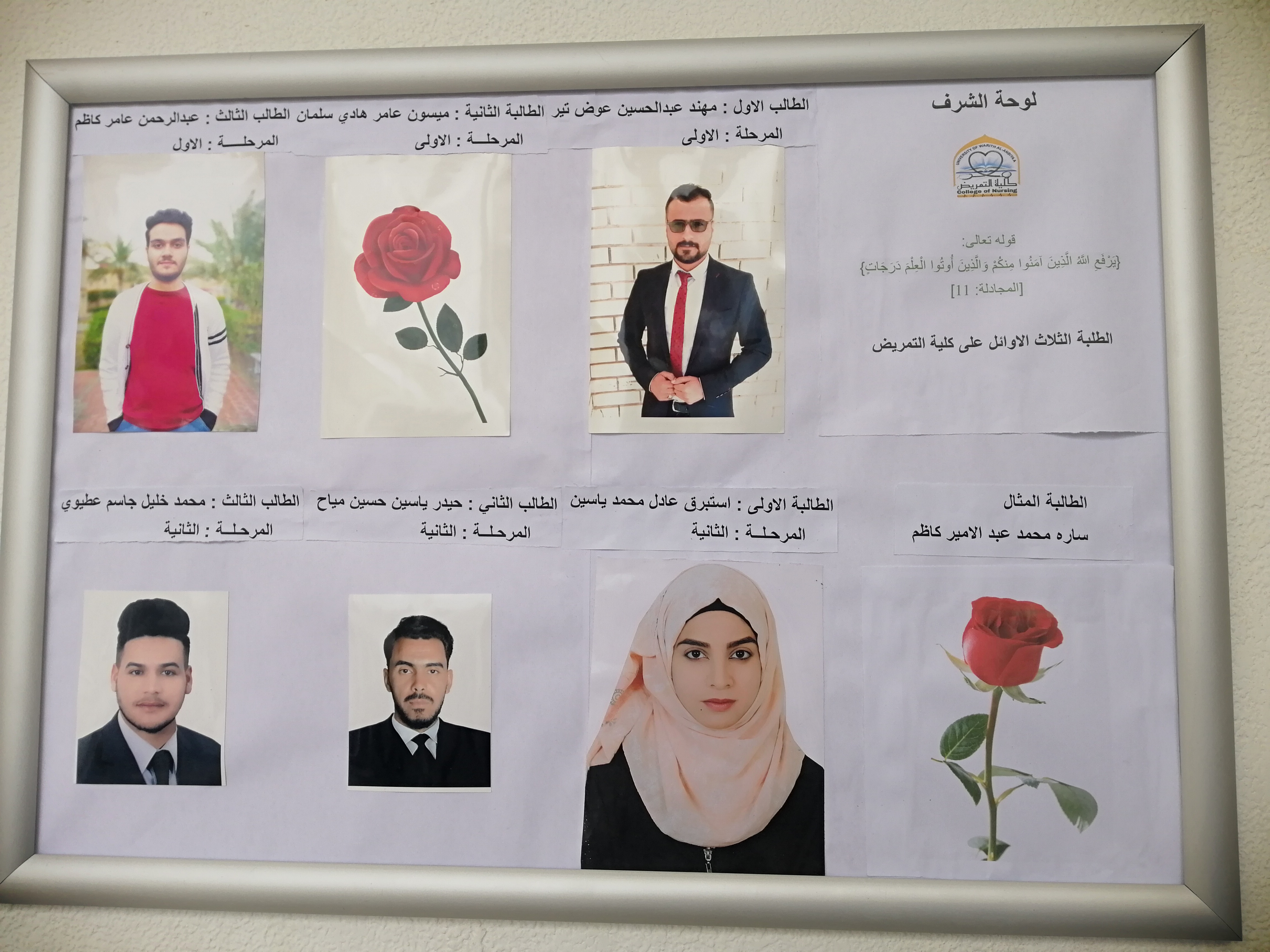 بادرت كلية التمريض بتعليق لوحة الشرف للطلبة الأوائل.