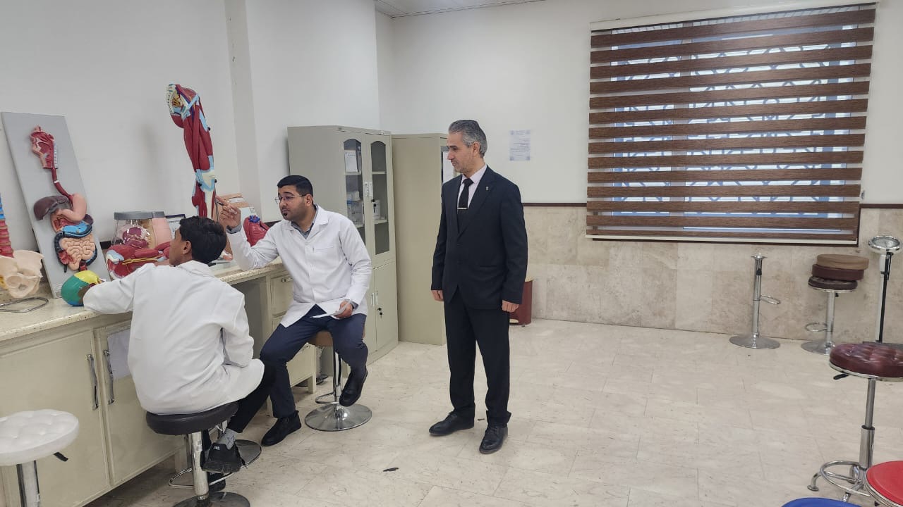 معاَون العميد للشؤون العلمية للمختبرات للاشراف ومتابعة الامتحانات العملية لطلاب المرحلة الاولى للعام الدراسي ٢٠٢٤ ٢٠٢٥