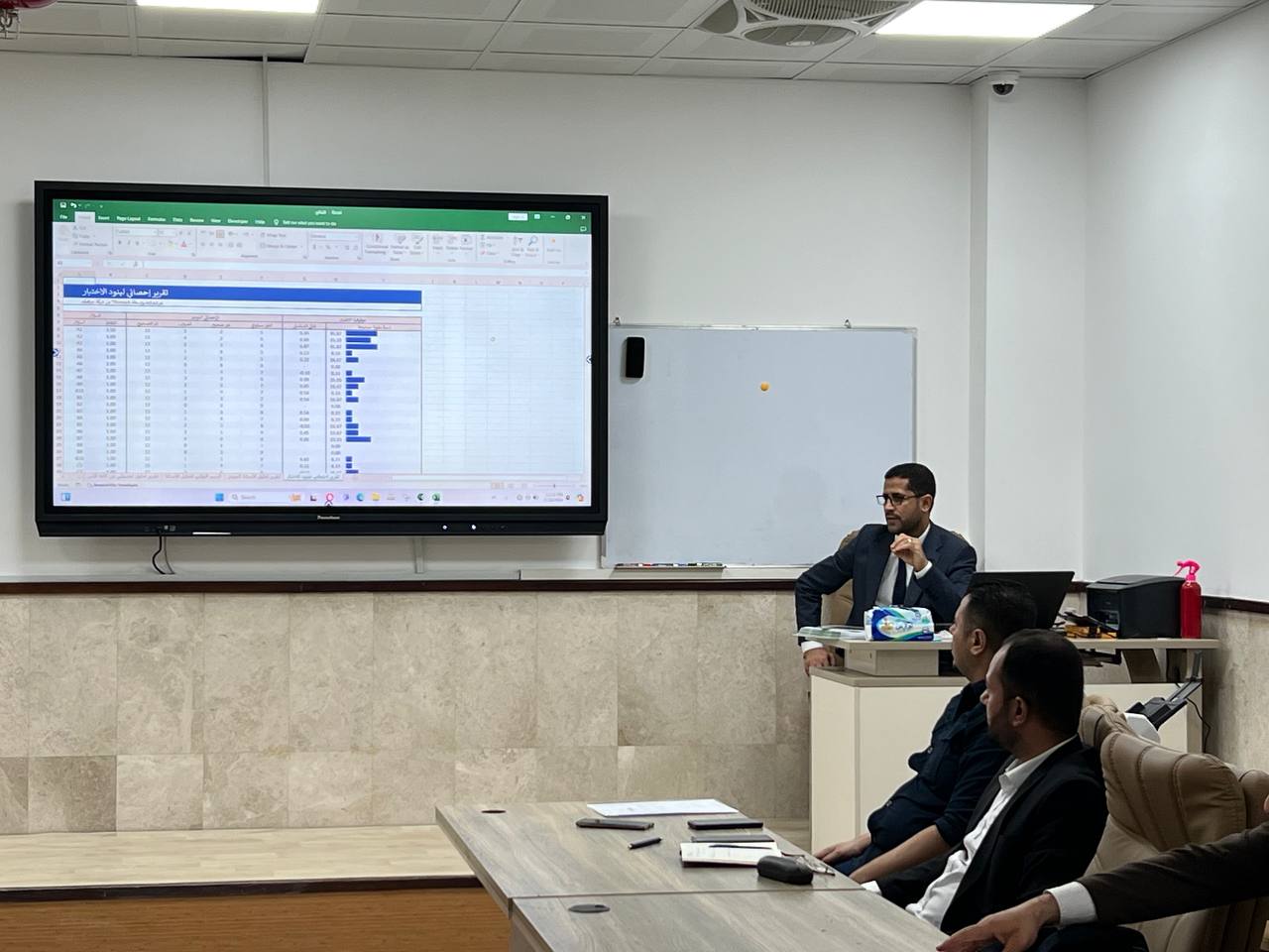 تطرقت الورشة حول البرنامج بالتفصيل من اعداد قاعدة البيانات وتصميم الورقة الامتحانية وعملية التصحيح الالكتروني.