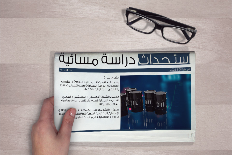أعلنت جامعة وارث الأنبياء (عليه السلام) عن استحداث الدراسة المسائية في قسم اقتصاديات النفط والغاز التابع لـ(كلية الإدارة والاقتصاد)، لتكون فرصة جديدة أمام شريحة واسعة من الطلبة الراغبين في دراسة هذا التخصص الحيوي.