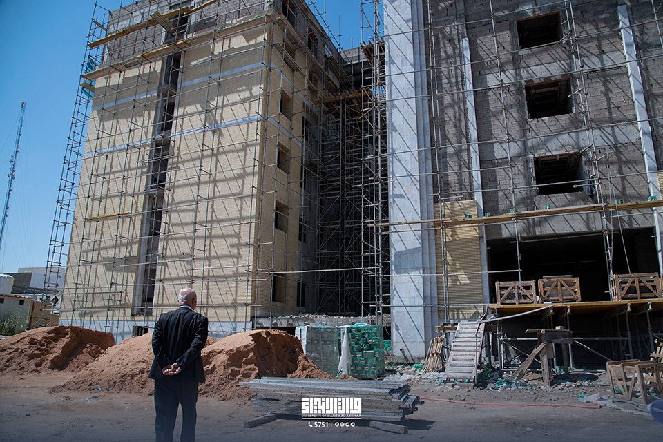 تفقد السيد رئيس الجامعة الأستاذ الدكتور إبراهيم سعيد الحياوي، مبنى الأقسام الداخلية للطالبات برفقة عدد من مهندسي الشركة المنفذة. تأتي هذه الجولة للاطلاع على تقدم الأعمال والإنجازات التي وصلت إلى مراحل متقدمة، حيث تسعى الجامعة إلى إنشاء مبانٍ جديدة تكفي لاستيعاب أعداد الطالبات المتزايدة.