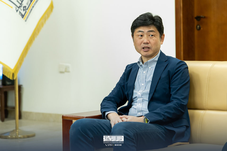رحب السيد رئيس الجامعة، الاستاذ الدكتور إبراهيم الحياوي، بالدكتور نيشينو ايشيزو، بمرافقة الدكتور صالح الجابري، مدير مركز اعتلال الأعصاب، وأكد على أهمية التكامل والتعاون بين المركز وكلية الطب في جامعة وارث الأنبياء (عليه السلام).