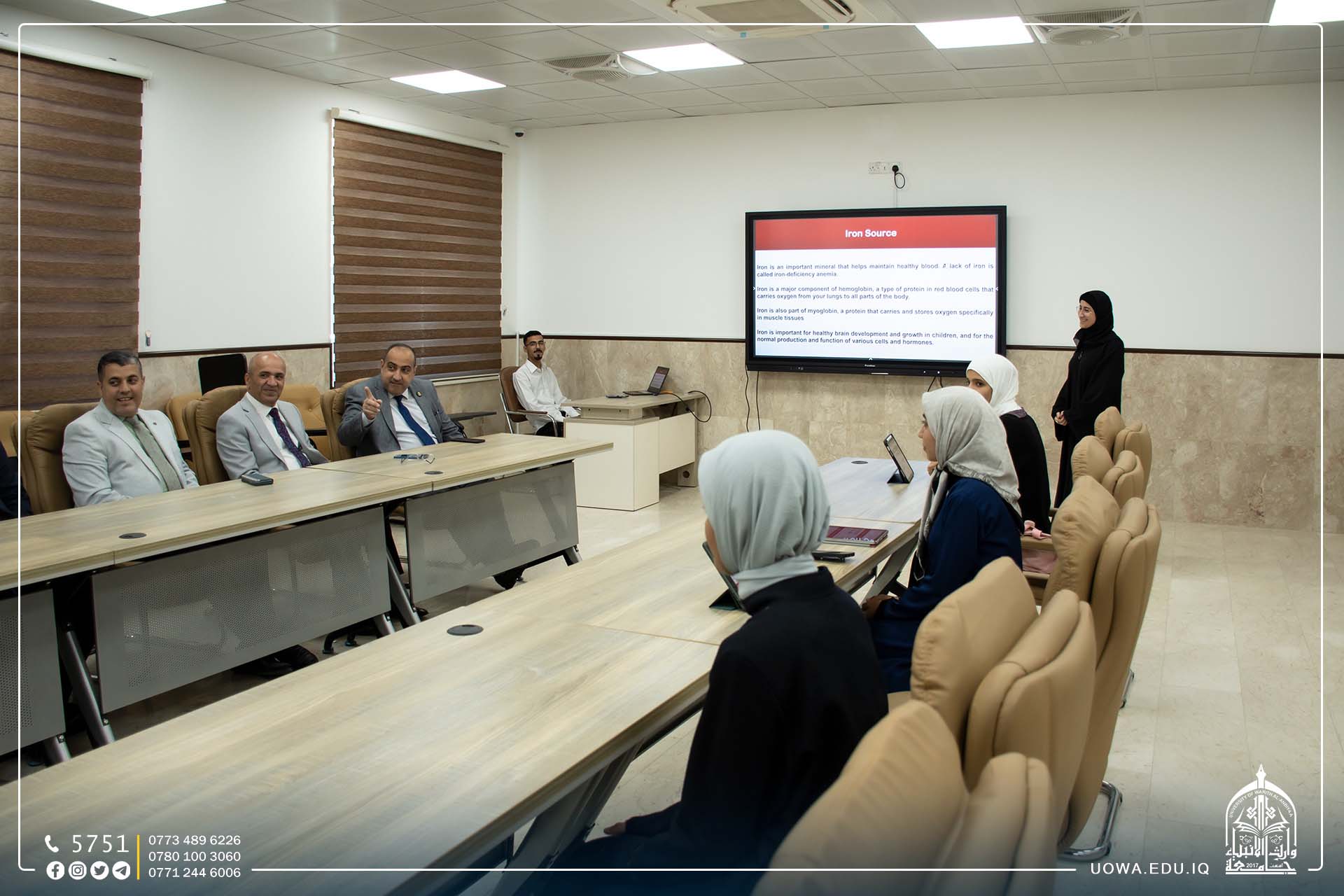 طلبة المرحلة الاولى في كلية الطب بجامعة وارث الانبياء (عليه السلام)، يقدمون سيمنرات علمية عن بعض الامراض بحضور رئاسة الجامعة وعمادة الكلية.