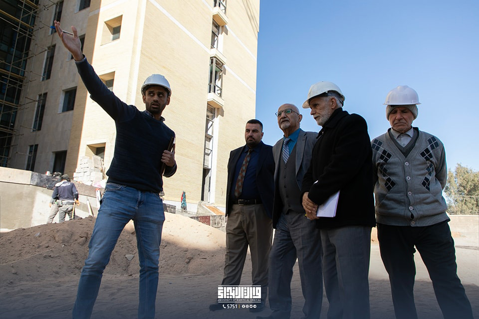 Prof. Dr. Noufal Al-Araji, Vice President for Administrative Affairs, accompanied by Dr. Munaf Fouad, Head of the University’s Construction and Projects Department, conducted an inspection visit to review the progress of the dormitory project.
