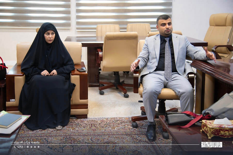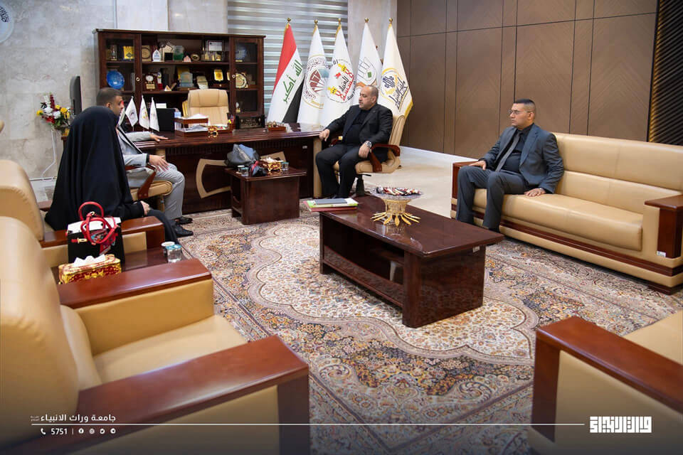 The President of the University of Warith Al-Anbiyaa, Professor Dr. Ibrahim Saeed Al-Hayyawi, received a delegation from the Iraqi Syndicate for Training and Development, headed by Mr. Mohammed Al-Moussawi, who expressed his appreciation to the University Presidency for its active participation in the Syndicate’s conference held under the patronage of the Holy Shrine of Imam Hussain. He also commended the speech delivered by the University on behalf of the Shrine's Committee during the conference.