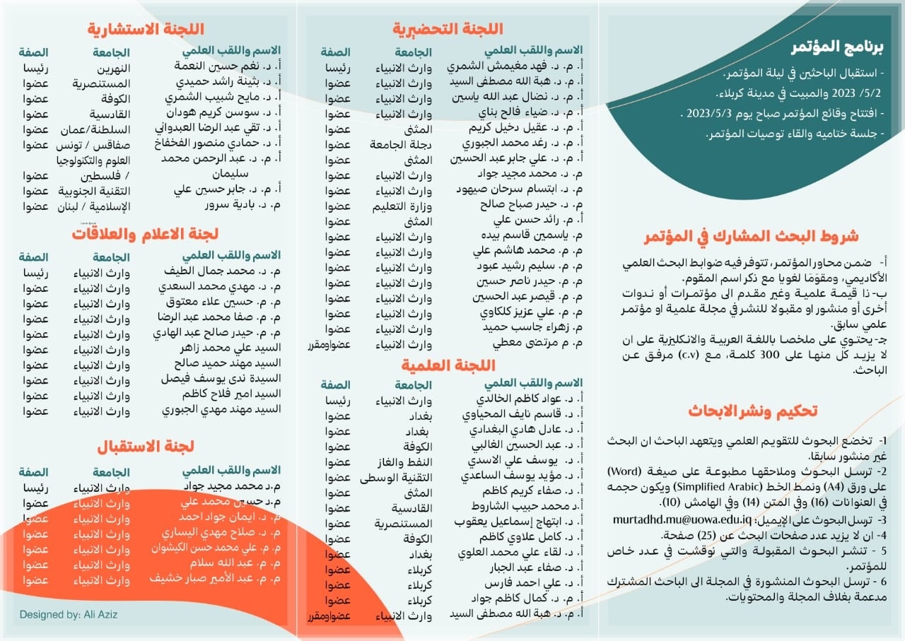 Under the patronage of the university president, Professor Dr. Ibrahim Al-Hayawi, the College of Management and Economics at the University of Warith Al-Anbiyaa (Peace Be Upon Him) organized its first scientific conference. The conference was held under the theme "Utilizing Managerial and Economic Sciences in the Service of the Iraqi Economy.