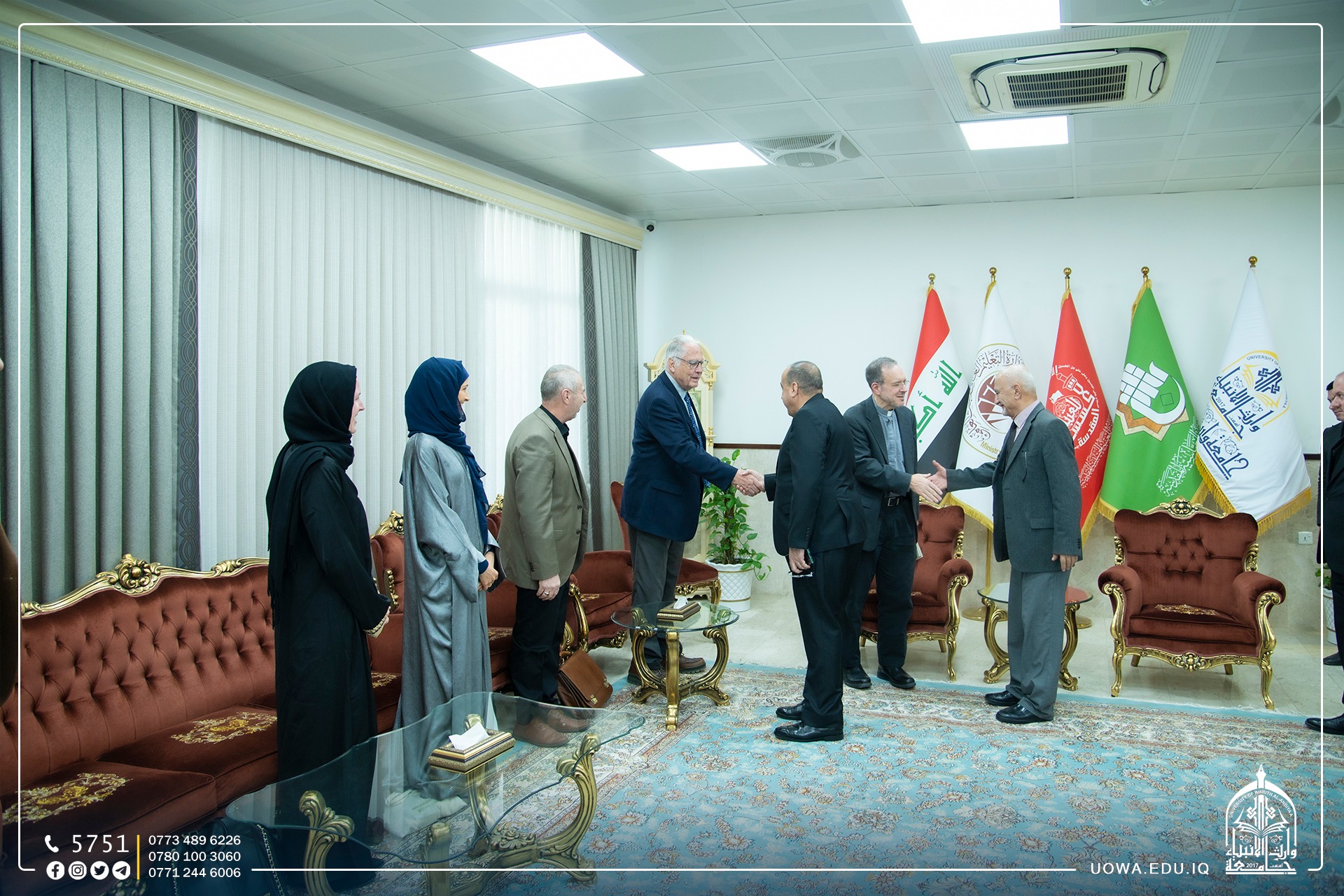 As part of the events of the International Scientific Conference organized by the Holy Shrine of Imam Hussain, a delegation from the Christian faith visited the University of Warith Al-Anbiyaa (Peace Be Upon Him). The conference focuses on the esteemed religious authority, His Eminence Sayyid Ali Al-Husseini Al-Sistani (May his shadow endure).