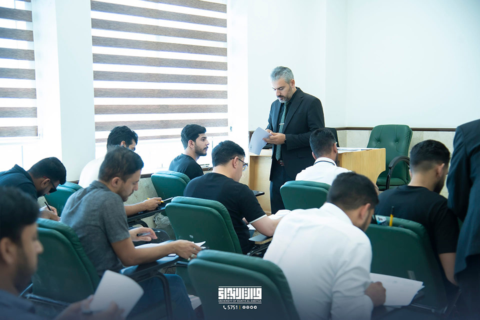 The ministerial final exams for students of the faculties and departments of the University of Warith Al-Anbiyaa (PBUH) continue with excellent smoothness amid a good atmosphere and high coordination, in the presence of the esteemed ministerial committee and the respected Professor Dr. Waqid Al-Mousawi, the assistant president of the university for scientific affairs.