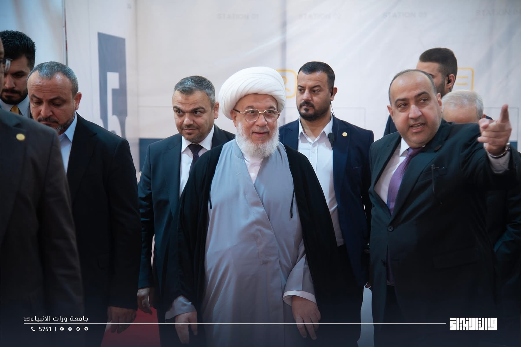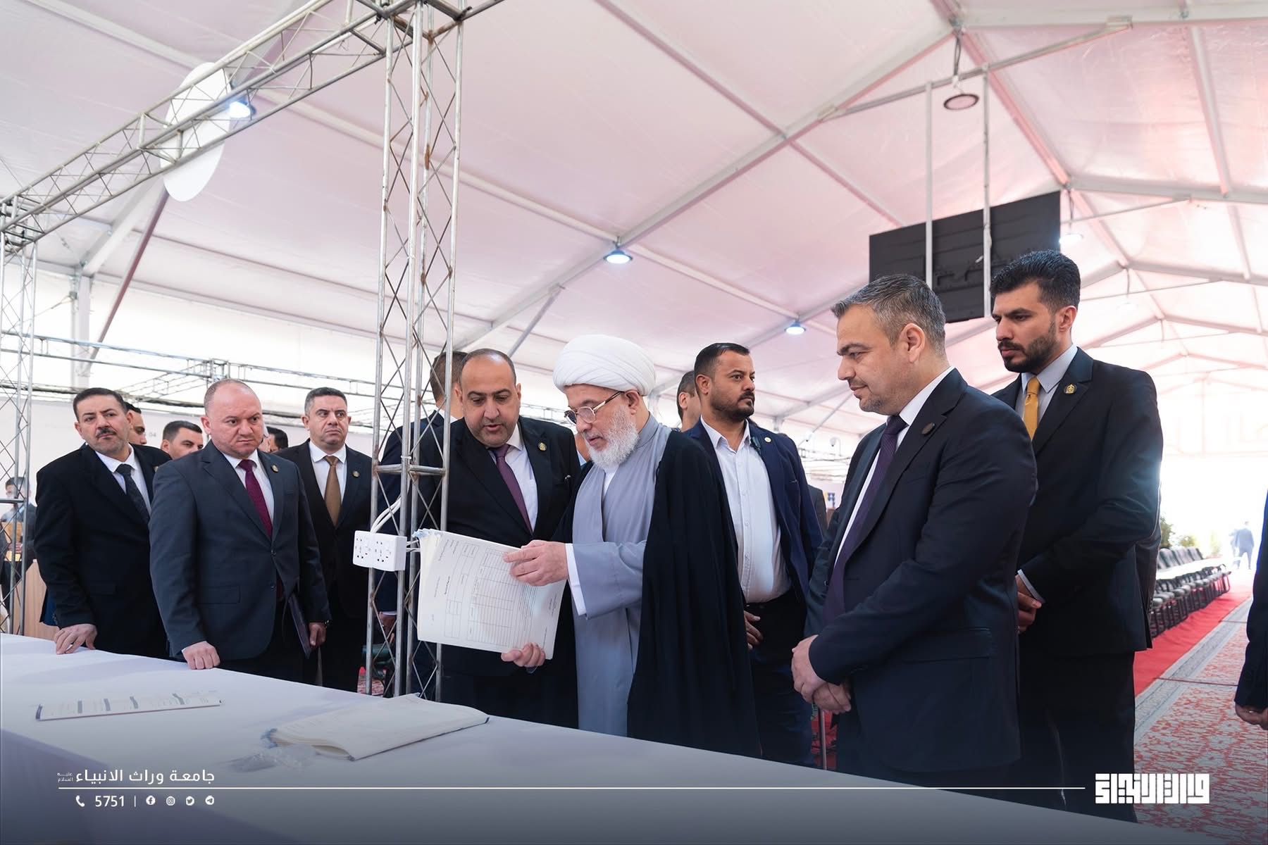 The representative of the Supreme Religious Authority, His Eminence Sheikh Abdul Mahdi Al-Karbalai ,visits the registration tent at Warith Al-Anbiyaa University