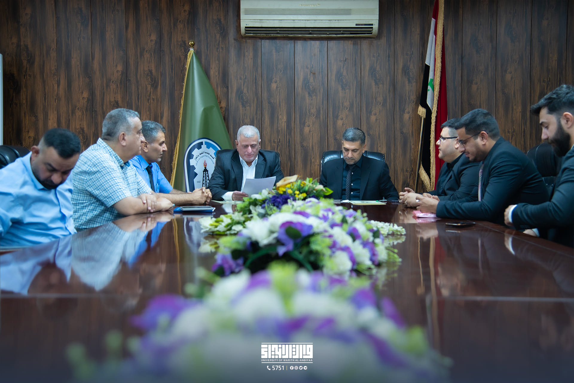The Dean of the College of Engineering at the University of Warith Al-Anbiyaa (peace be upon him), Assistant Professor Dr. Hussein Hadi Al-Awadi, and his accompanying delegation signed a twinning and joint cooperation agreement with the Head of the Department of Oil and Gas Engineering at the University of Technology, Professor Dr. Fadel Sarhan Kazem.