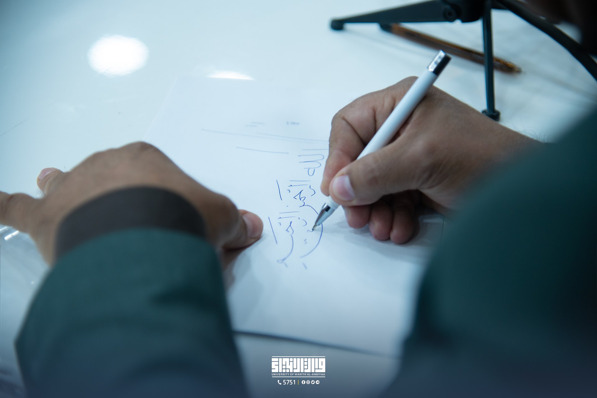 The workshop was held in the hall of the Al-Ali building, in the presence of a number of students and professors participating in the project. The workshop was presented by Dr. Rasool Al-Zarkani, head of the Calligraphers Association, Babylon branch, where he discussed the basics and techniques of writing the Holy Qur’an using high-precision artistic methods. The participants expressed their great admiration for the level of preparation for the project and the experience provided by Dr. Al-Zarkani.
