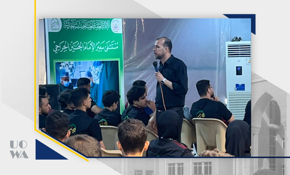 As part of the medical preparations for the Arbaeen pilgrimage, a number of medical students at Warith Al-Anbiya University (peace be upon him) participated in a training workshop held in the emergency room of Safir Al-Imam Al-Hussein Hospital (peace be upon him). The workshop, presented by Dr. Alaa Al-Janabi, focused on dealing with emergency cases and first aid, with the goal of enhancing students' readiness to participate in the medical services provided to pilgrims.