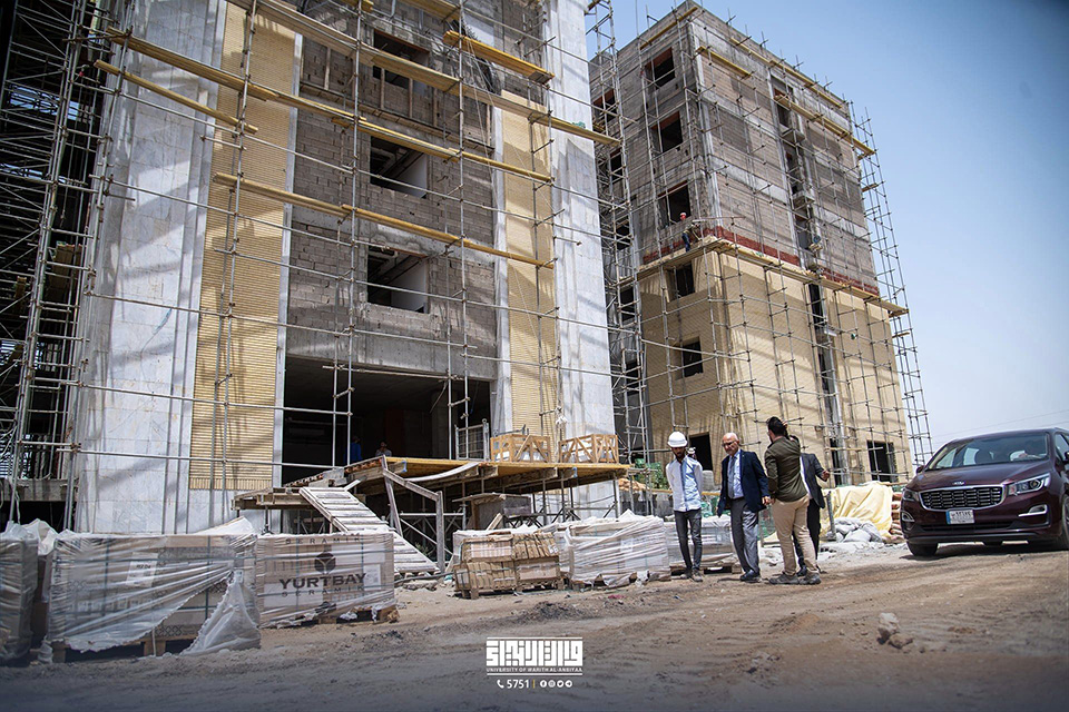 Accompanied by several engineers from the construction business, Professor Dr. Nofal Al-Araji, the Chairman of the Founding Board and Assistant for Administrative at the University of Warith Al-Anbiyaa (PBUH), conducted an inspection tour of the female student dormitory building. The purpose of the trip was to assess the state of the project and monitor completion rates, with instructions to step up construction efforts in order to finish the building as soon as feasible.