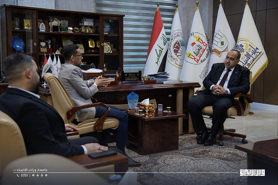 The President of the University of Warith Al-Anbiyaa (PBUH), Prof. Dr. Ibrahim Saeed Al-Hayawi, welcomed the Director of Al-Imam Al-Hadi Centre for Neuromuscular Disorders — affiliated with the Holy Shrine of Imam Hussein (PBUH) — to discuss avenues of joint cooperation in scientific, research, and medical fields.