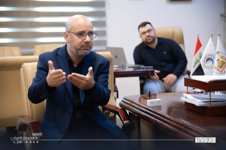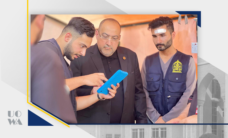 In its ongoing efforts to enhance digital infrastructure and improve safety and emergency response systems, the University of Warith Al-Anbiyaa (PBUH) has launched the first phase of its Civil Defense Early Warning Program. The launch took place during a meeting between the President of the University, Prof. Dr. Ibrahim Saeed Al-Hayawi, the Vice President of Academic Affairs, Prof. Dr. Waqed Al-Moussawi, and a delegation from the Media Department of the Holy Shrine of Imam Hussein (PBUH).